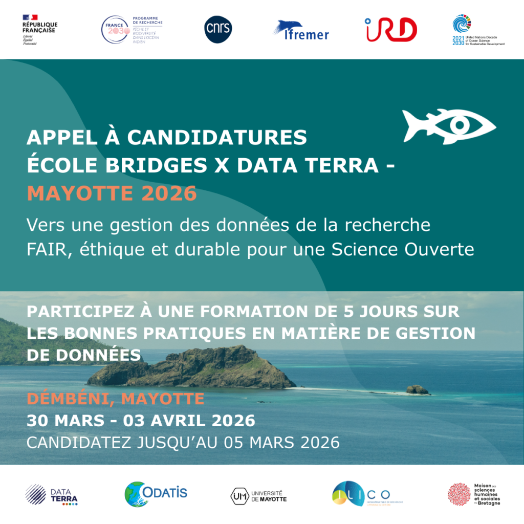 This school aims to provide a space for networking and the exchange of best practices in research data management. It is open to local (residents of Mayotte) data users and producers working in areas related to BRIDGES’ themes: biodiversity, environment, fisheries, humanities and social sciences, etc.