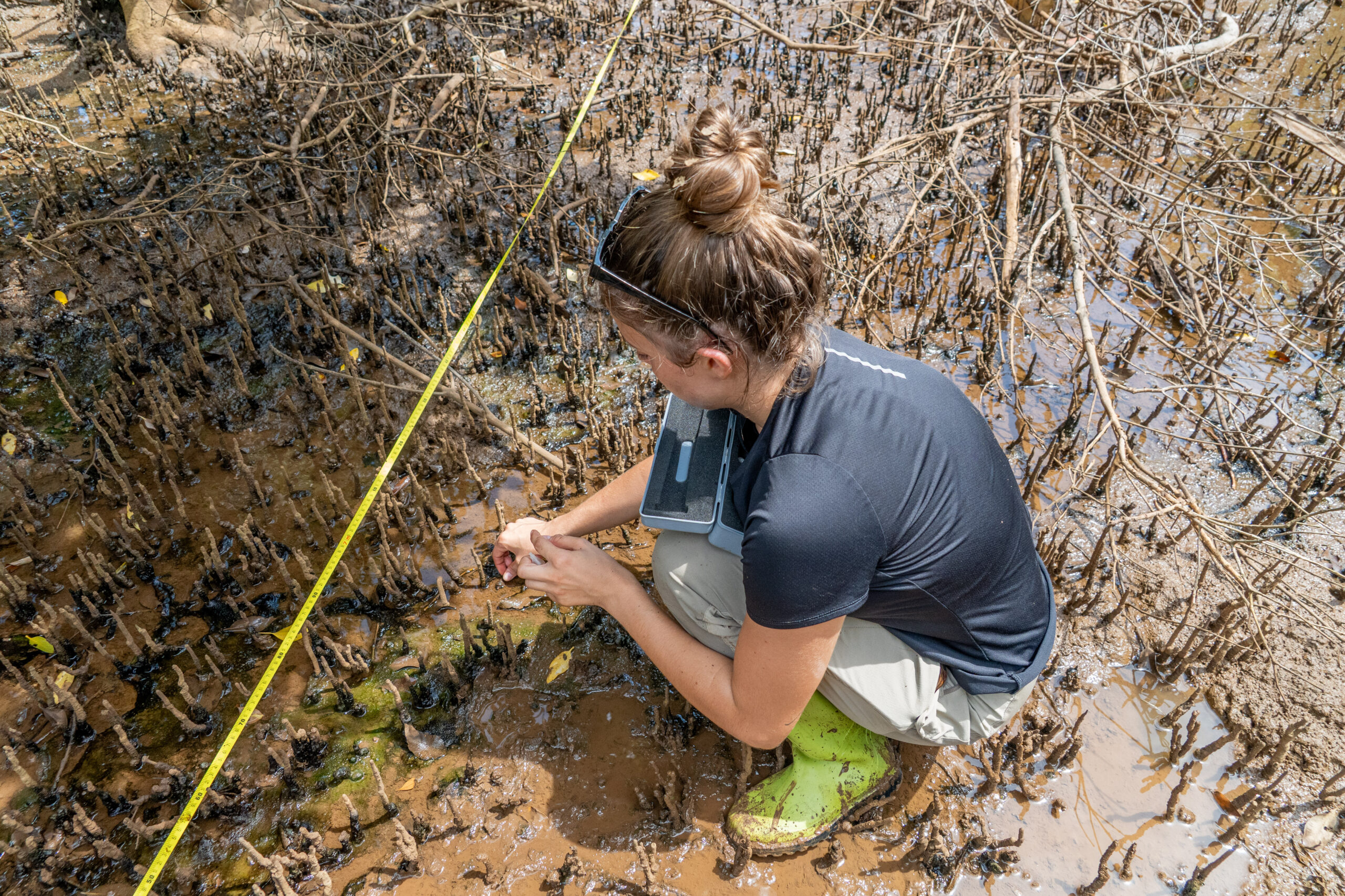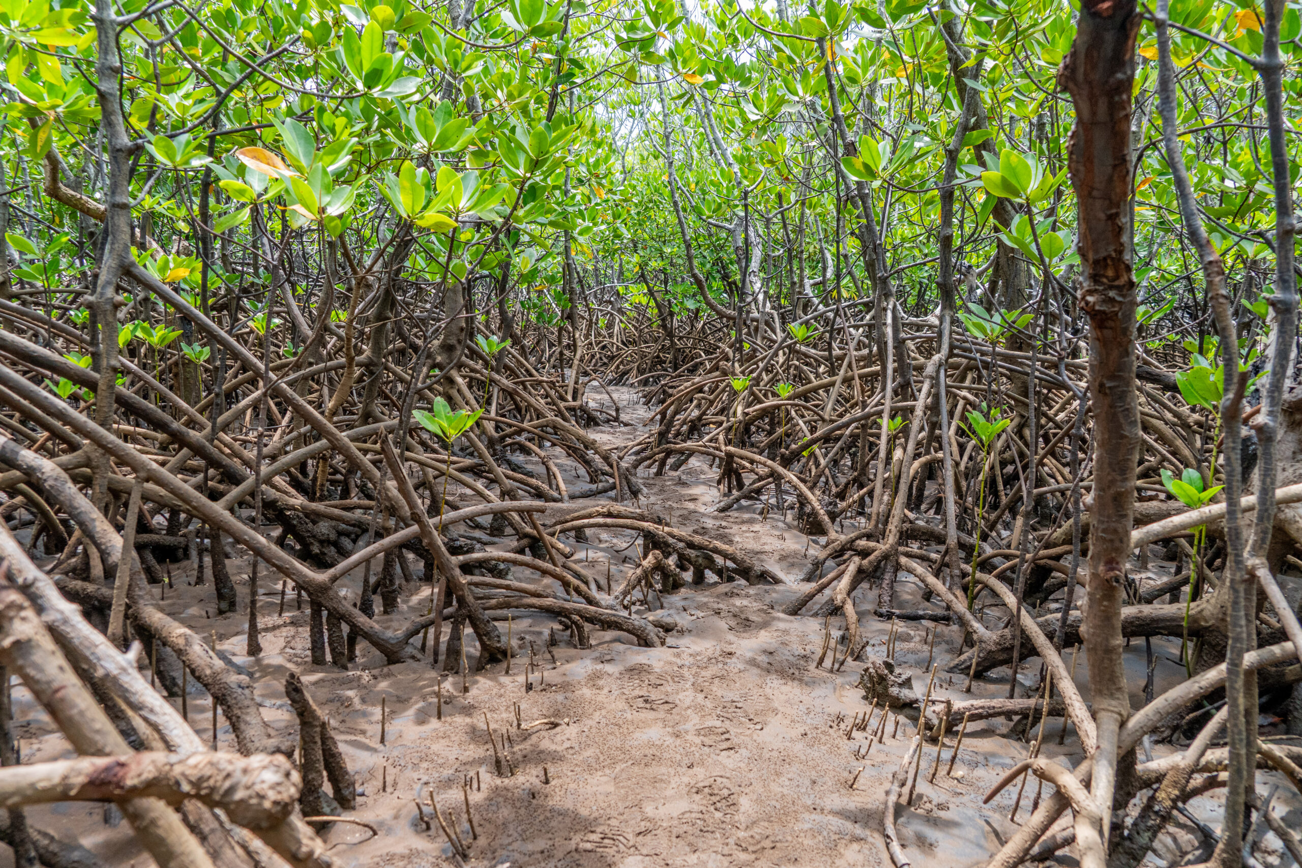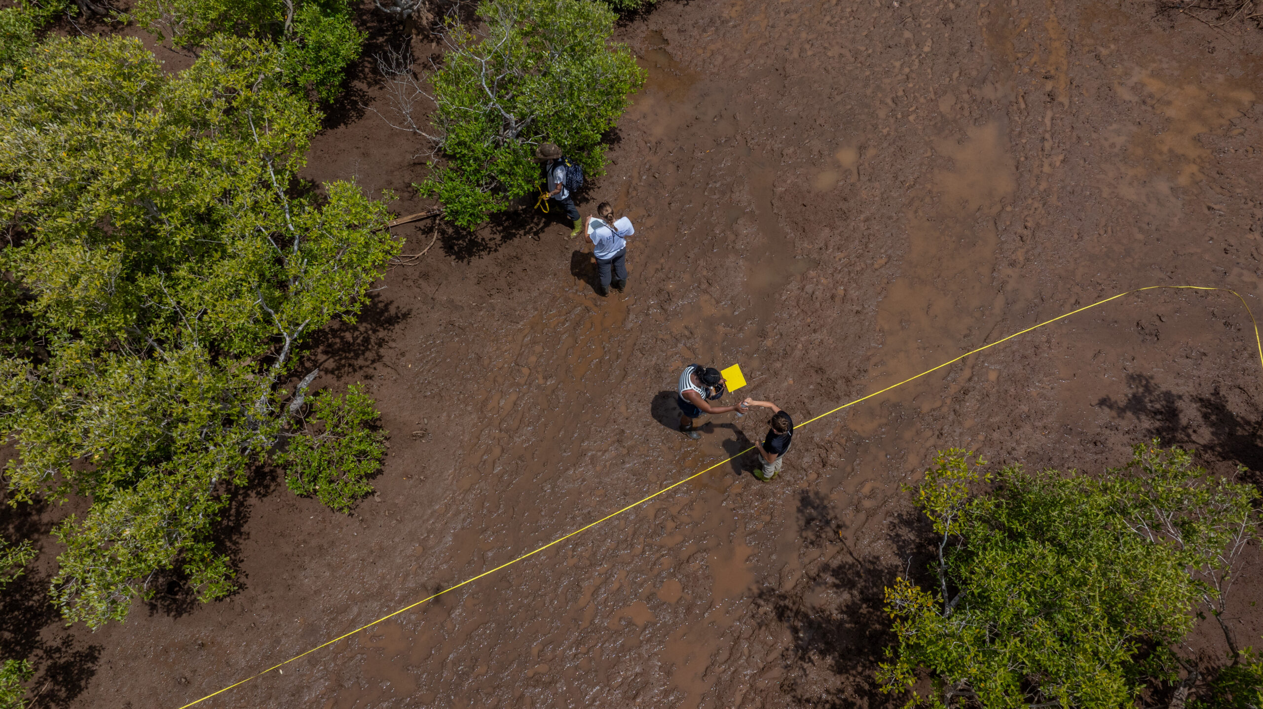 - Étude de la mangrove selon un gradient terre–mer, incluant faune et flore